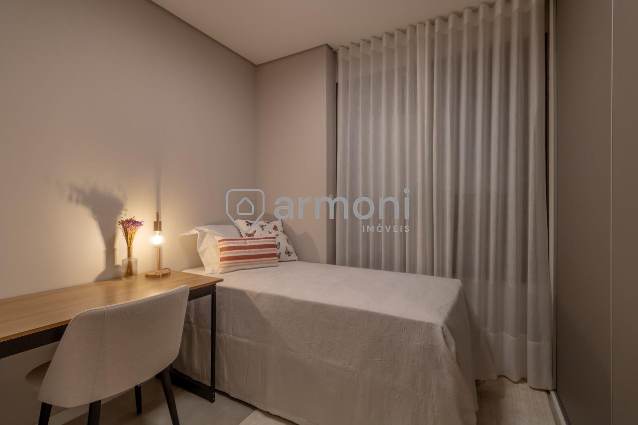 Os dormitórios possuem persianas motorizadas, agregando praticidade e sofisticação ao ambiente.