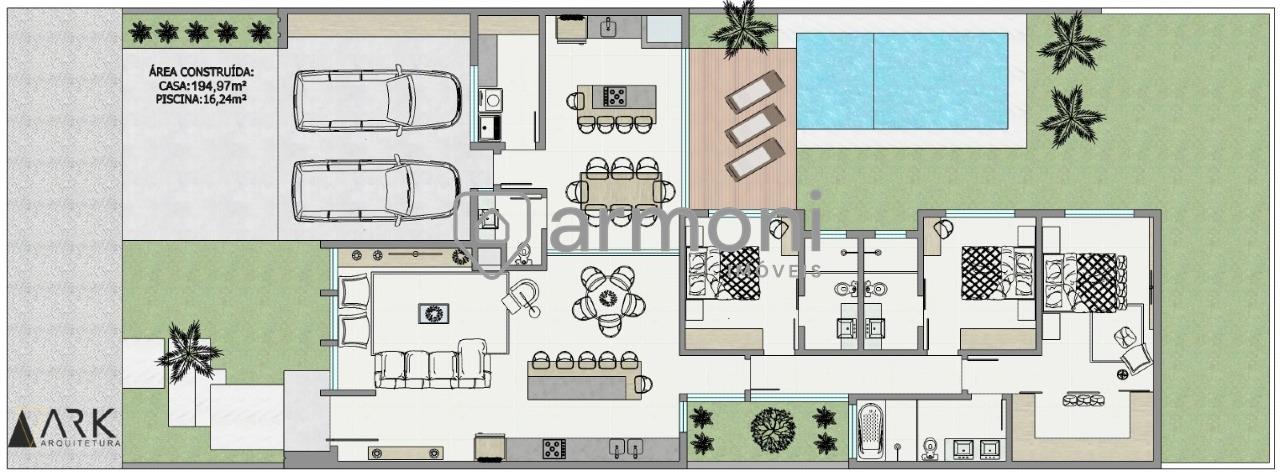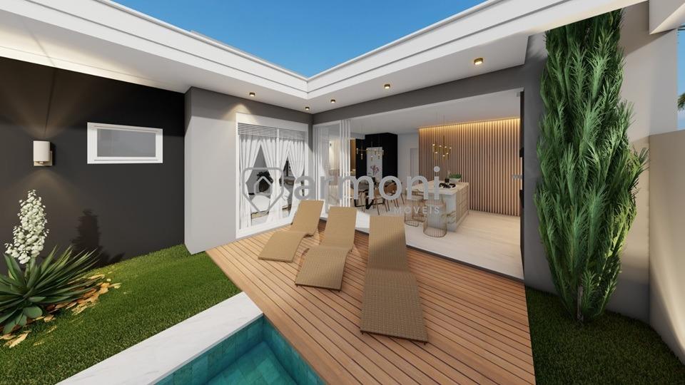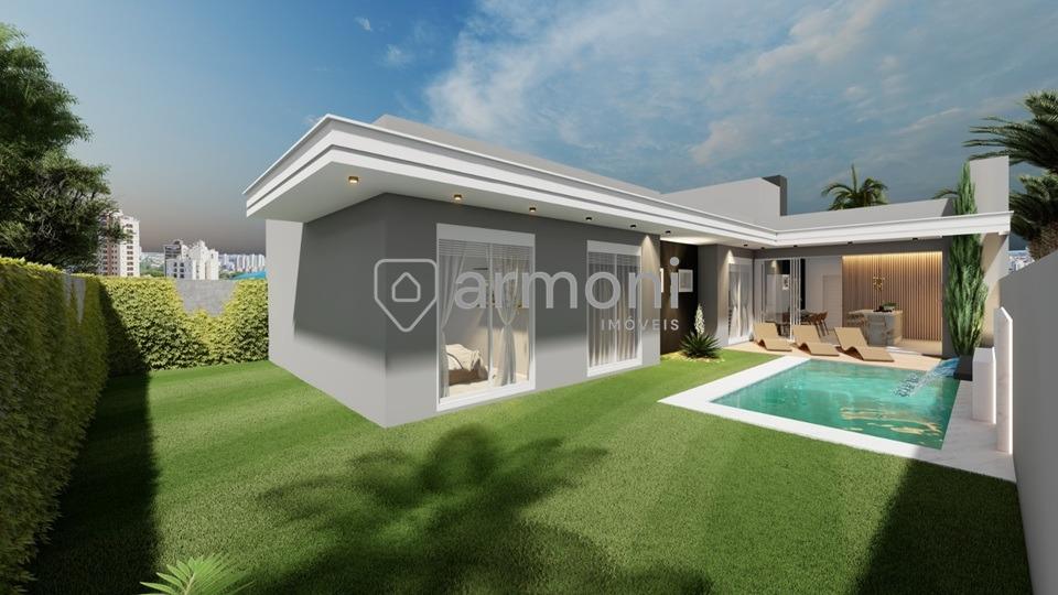 Casa térrea no Bairro Lucas Araújo – Passo Fundo, com 194,95 m² de área construída em terreno de 360 m². Projeto com living integrado e pé-direito alto, 3 suítes, sendo suíte master.